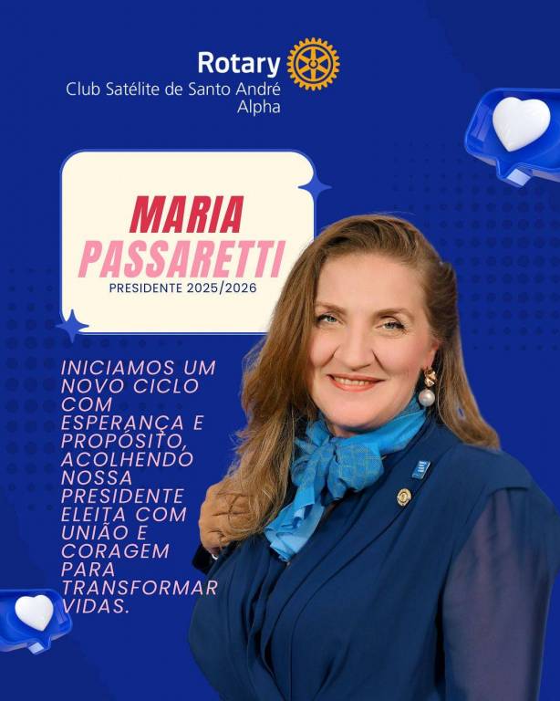 No dia 1º de julho de 2025, Maria Passaretti Vital Barboza assumiu oficialmente a presidência do Rotary Club Satélite de Santo André Alpha para o ano rotário 2025-2026. A cerimônia de transmissão e posse aconteceu em evento festivo realizado no dia 3 de julho, no Espaço Win, em Santo André, em conjunto com o clube padrinho, Rotary Club de Santo André.